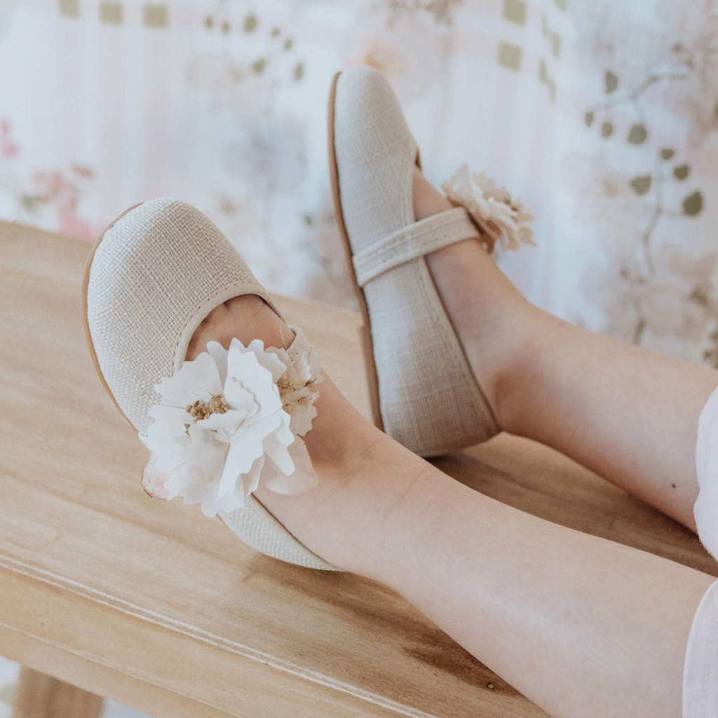 Descubrí nuestros apliques de flores de tela, únicos y cuidadosamente confeccionados a mano, para realzar los zapatitos de tu hija en esas ocasiones especiales que merecen un toque distinto.